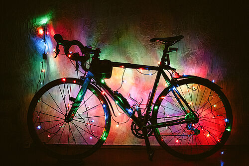 Traditionelle Lichterfahrt mit schön geschückten und leuchtenden Rennrädern. Hier gehts zum Eventtermin.