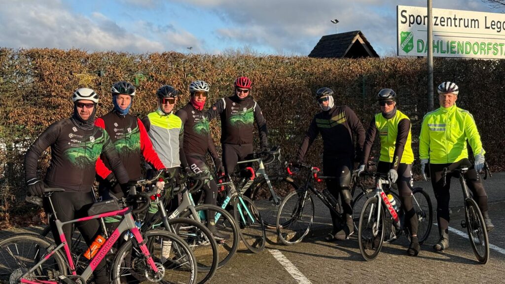 Schön geschmückte und beleuchtete Räder brachten dieses Jahr 10 Rennradfahrer mit zum Treffpunkt am Dahliendorfstadion, um von dort die traditionelle Heiligabend zu fahren. Rund 45 km durchs kalte und windige Münsterland, vorbei an Heek, Nienborg, Asbeck und Osterwick.